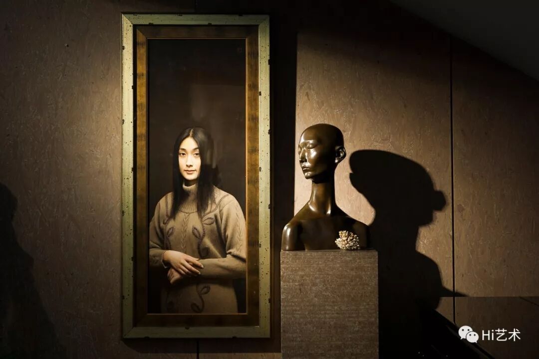左侧为“唐园”的镇宅之宝:冷军《蒙娜丽莎——关于微笑的设计》,当时我试图找出画面上丁点的笔触痕迹,但因为艺术家高超的写实功底,整件作品即便“鸡蛋里挑骨头”般去观看,依然“和照片一模一样”;右侧为向京的雕塑作品