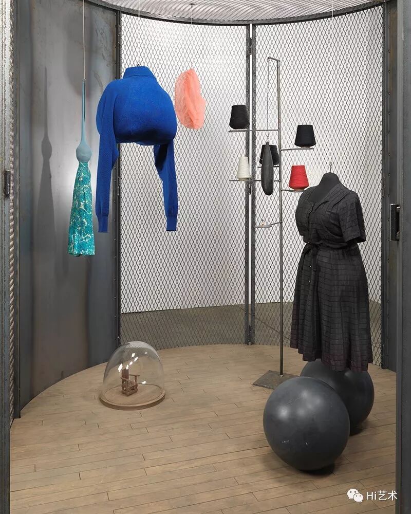极度情绪化的布尔乔亚很难完全把自己内化于雕塑的形体中,所以她也经常会选择表达更为直接的行为或是更有感染力的空间装置为媒介。《细胞》系列作品是她完全释放自己能量的作品,可以看到她不再为特定的形式所拘束,看似信手拈来之物,却都显示出一种秩序。她说:“我是一个理性的个人,相信心理学和哲学,对我来说,唯一重要的是事物的可确定性。”她的《细胞》系列作品既是她个人的呓语碎片,也是一种充满神秘色彩的萨满仪式。铁丝网编织的笼子,既具有了隔离感又满足了观众的窥探欲。是安全的保护壳,也是焦虑的集中营。甚至也折射出艺术家自己内心的矛盾心理。如同人身上真实的细胞,一直在生长、裂变、衰亡。细微不易察觉却隐藏了情感记忆的密码。不断的循环更替,似乎也暗示了艺术家从孩子到与母亲,再由母亲及孩子的情感位移的复杂变化。