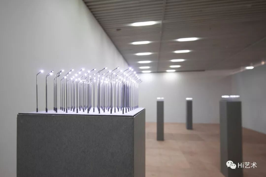 娜布其《陌生的风景》30×30×190cm×11件 路灯模型、水泥板 2016