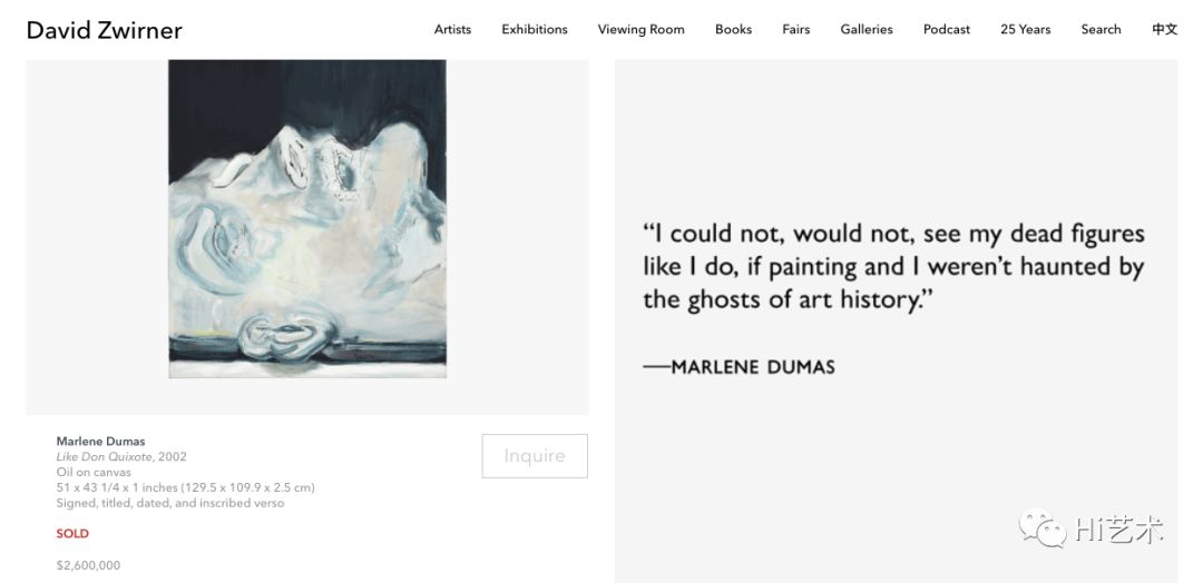 卓纳画廊马琳·杜马斯(Marlene Dumas)作品已售,卓纳画廊官网截图
