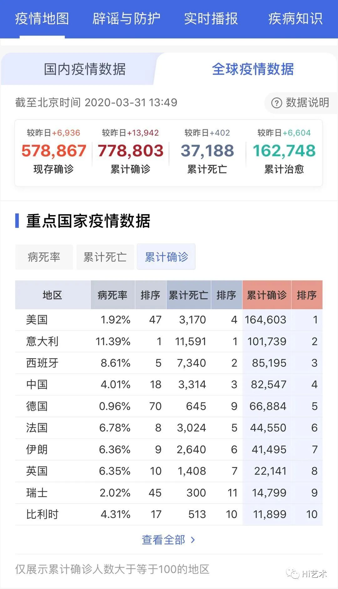 截至3月31日14时37分数据统计(新增数从北京时间0时起计),共有186个海外国家和地区发现确诊病例(图:新浪新闻)