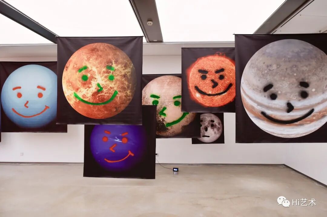 这件作品来自艺术家所构思的故事——他受《狮子王》中“过去的君王都在天上看着我们”深受启发,而决定要去太空把星球喷成笑脸。