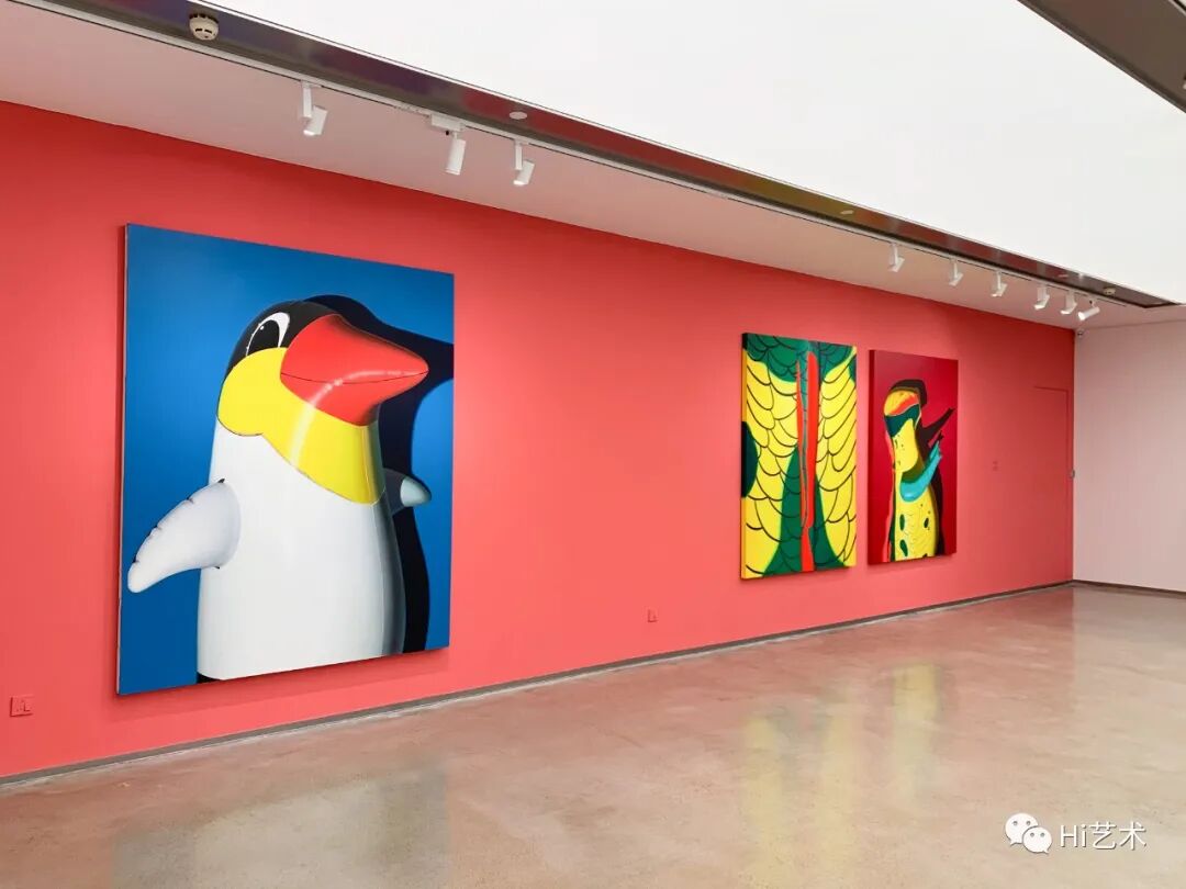 孙一钿《热带企鹅》230×183cm 布面丙烯 2018,《哥斯拉的脊背》《哥斯拉》200×150cm 布面丙烯 2018