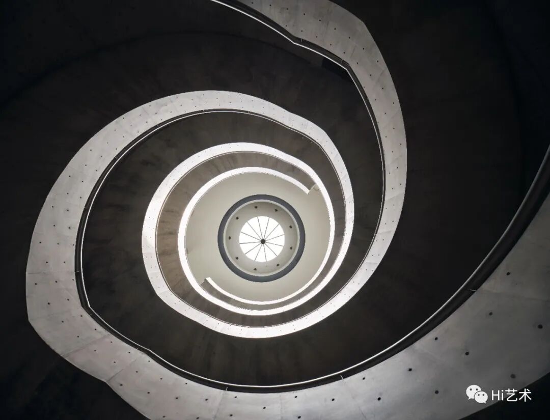 内部的清水混凝土楼梯展露出完整的面貌,全世界仅此一例的双螺旋结构连接了垂直方向分布的各层展厅。错层勾勒出的观展路线,让观众可以从不同入口进入美术馆空间。