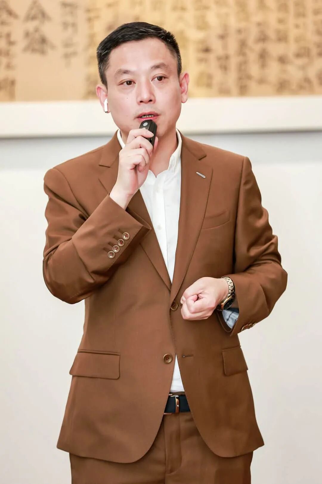 策展人何桂彦正在导览