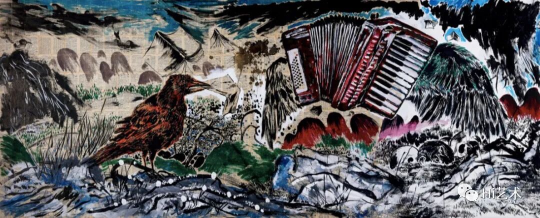 Lot 1106 高瑀《鹊桥相会图》 200×300cm 布面丙烯 2009伍劲:时隔十年再回头看高瑀的作品,你会发现它的复杂性超过了艺术家当时的年龄,28岁的高瑀已经可以实现非常复杂的构思,这件《鹊桥相会图》里既包含了漫画的元素,也包含了传统民间艺术的元素和一种超现实的思路。这类综合性的作品在2008年前后达到了高潮,在2012年以后艺术家又走向了完全不同的方向,高瑀的早期作品也是目前市场上倍受关注的焦点。