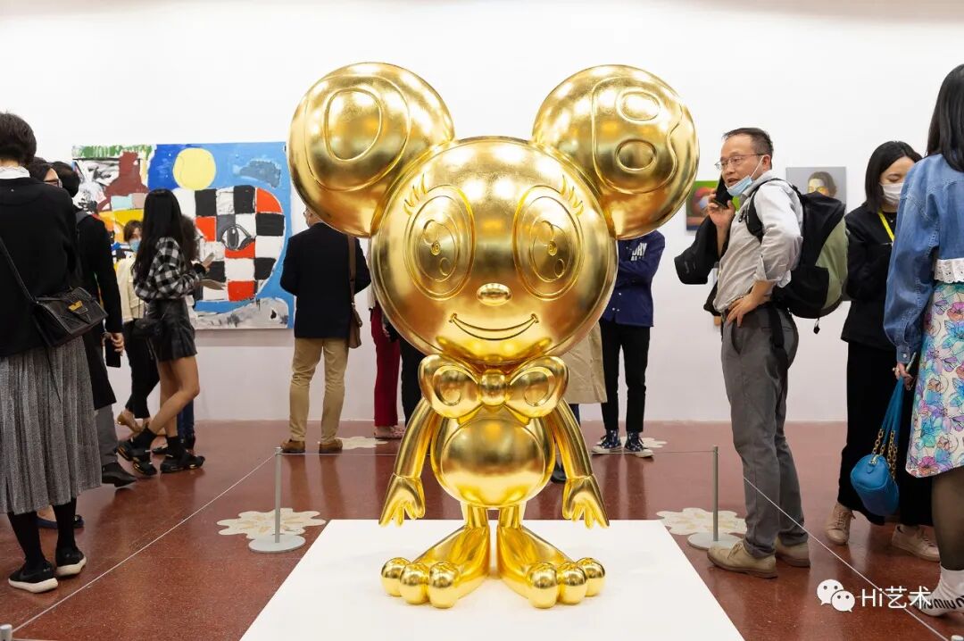亚洲艺术中心展位现场,外侧李真金色的雕塑《万壑争空· 亢一号》已经售出