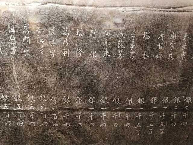 碑文所记录的历史信息是相当有震撼性的,总计35条捐赠记录,捐银三万一千八百余两,其中考证明确为颜料商的有20 条,共计捐银二万一千九百两。