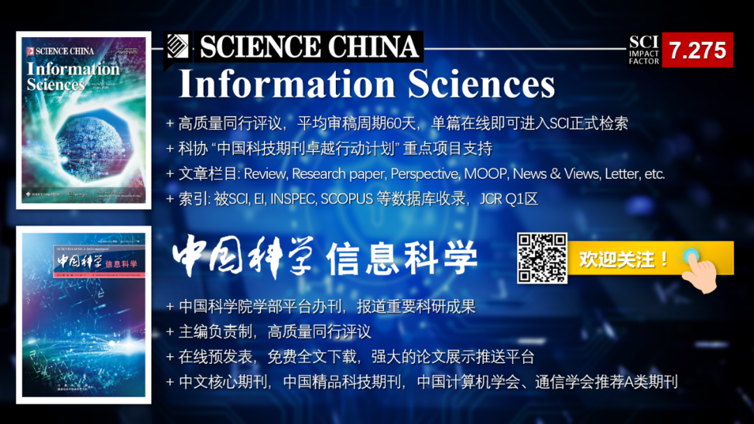 Xiaodong HE & Zhiyong GENGSci China Inf Sci, 2022, 65(10):209201Novel dynamic event-triggered coordination for scaled consensus without continuous communication or controller update Sci China Inf Sci, 2022, 65(10):209202Reliable attitude estimation algorithm considering atypical observation Xiao-Ting GUO, Chong SHEN, Jun TANG, Jie LI & Jun LIUSci China Inf Sci, 2022, 65(10):209203Origami-inspired frequency selective surface with large bandwidth modulation range based on electromagnetically induced transparency effect Sihong CHEN, Taisong PAN, Wei WANG, Yu GU, Guang YAO, Min GAO, Zhumei CHEN & Yuan LINSci China Inf Sci, 2022, 65(10):209301Low-complexity beamforming design for IRS-aided communication systemsXiaoling HU, Mugen PENG & Caijun ZHONGSci China Inf Sci, 2022, 65(10):209302Plug-and-Play algorithm for under-sampling Fourier single-pixel imagingYe TIAN, Ying FU & Jun ZHANGSci China Inf Sci, 2022, 65(10):209303Efficient polar coding scheme and implementation with shared information bits Wenyue ZHOU, Xiaofeng ZHOU, Yifei SHEN, Qiang LIU, Liping LI & Chuan ZHANGSci China Inf Sci, 2022, 65(10):209304Van der Waals heterostructure tunnel FET with potential modulation beyond junction region Wenjing QIN, Yawei LV, Zhen XIA, Lei LIAO & Changzhong JIANGSci China Inf Sci, 2022, 65(10):209401