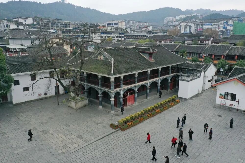 ↑2020年11月29日,游客参观遵义会议会址(无人机照片)。新华社记者欧东衢摄