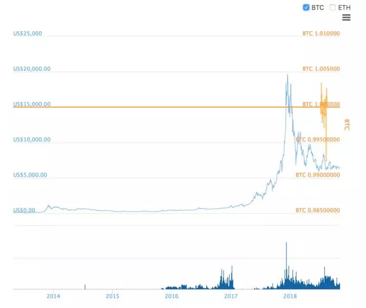 2018 年 1 月,比特币从高点坠落。这一次不是小跌,是腰斩。相比 2017 年 12 月的高峰,比特币总市值蒸发近七成。而且接下来并没有重现上一年的触底反弹之势,而是渐趋平稳,停在了 6000 美元左右。狂欢结束了。
