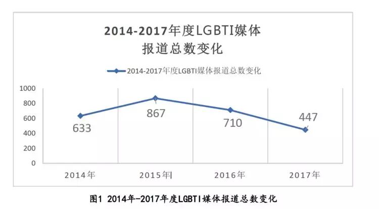 彩虹媒体奖的媒体监测数据显示,2015 年国内主流媒体对 LGBT 话题的报道达到历年巅峰,共 867 则,这个数字到 2017 年锐减一半至 447 则,回到 2013 年的水平。