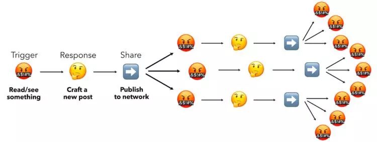 而更容易调动其人的却是负面情绪,不管是对一种仇恨言论的认同,还是对于不认同言论的反击。当社交媒体大到一定程度、拥有足够多用户数据的时候,算法总能帮负面情绪找到受众。