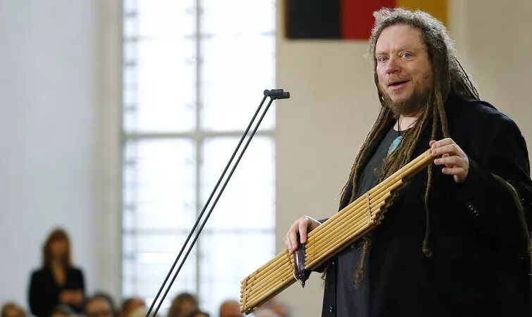 横题图:兰尼尔在法兰克福书展获奖的演讲致辞,以老挝民族乐器 Khaen 的演奏开场