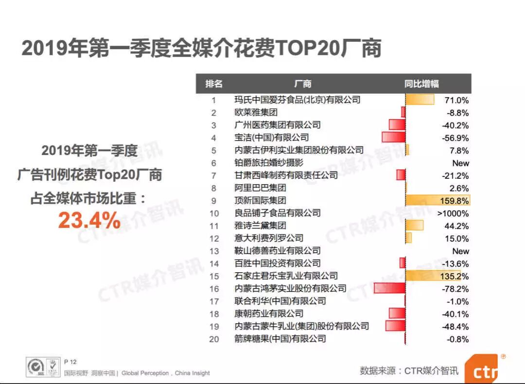 CTR 媒介智讯数据显示,2019 年第一季度的广告市场下降 11.2%,这是中国广告市场过去 11 年最大降幅,也是第一次第一季度的跌幅达到两位数。