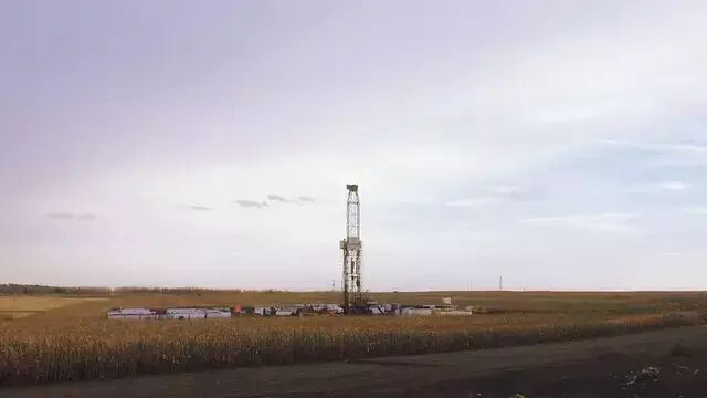 上面钻机装盘,驱动那个方钻杆,下面有钻头,往地底下打,同时循环泥浆。