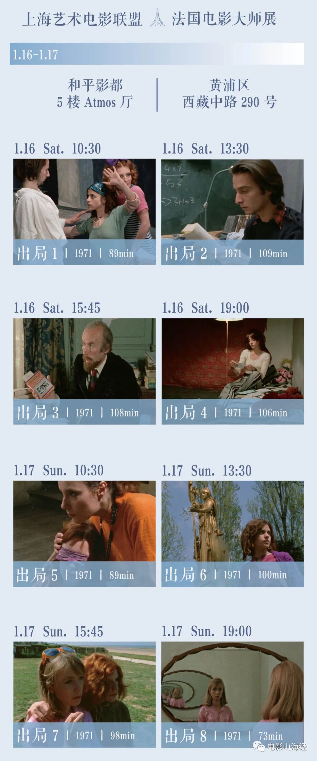 2021年1月9日至23日,上海艺术电影联盟将在上海影城cinity厅、和平影都atmos厅举办法国电影大师展,这个影展将放映法国电影大师戈达尔、雅克·里维特、侯麦的十三部长片和短片经典作品,共分七套节目呈现。所有拷贝均为数字修复版,建议观众仔细阅读本文的影片介绍和开票信息,及时把握中午12点开票时间,理性、适量抢得你最心仪的影片入场券。