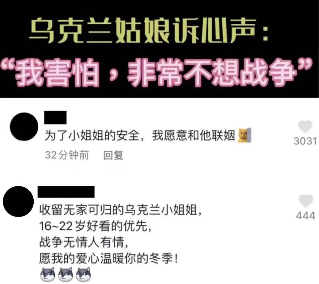 有叫嚷着要接收乌国美女者,动辄芳龄十八,肤白貌美,张嘴欧洲子宫,闭嘴红灯天堂。