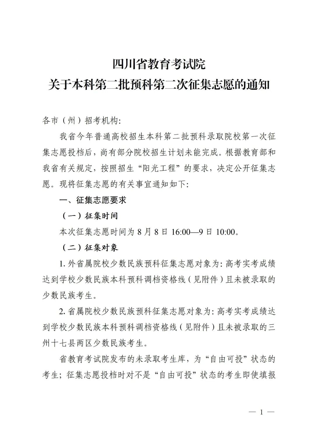 关于四川省2022年普通高校招生艺体类专科批征集志愿的通知