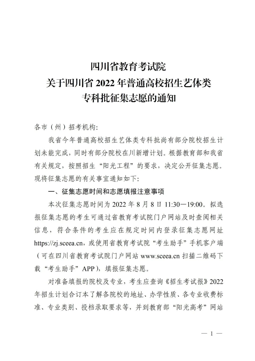 关于本科第二批第三次征集志愿的通知