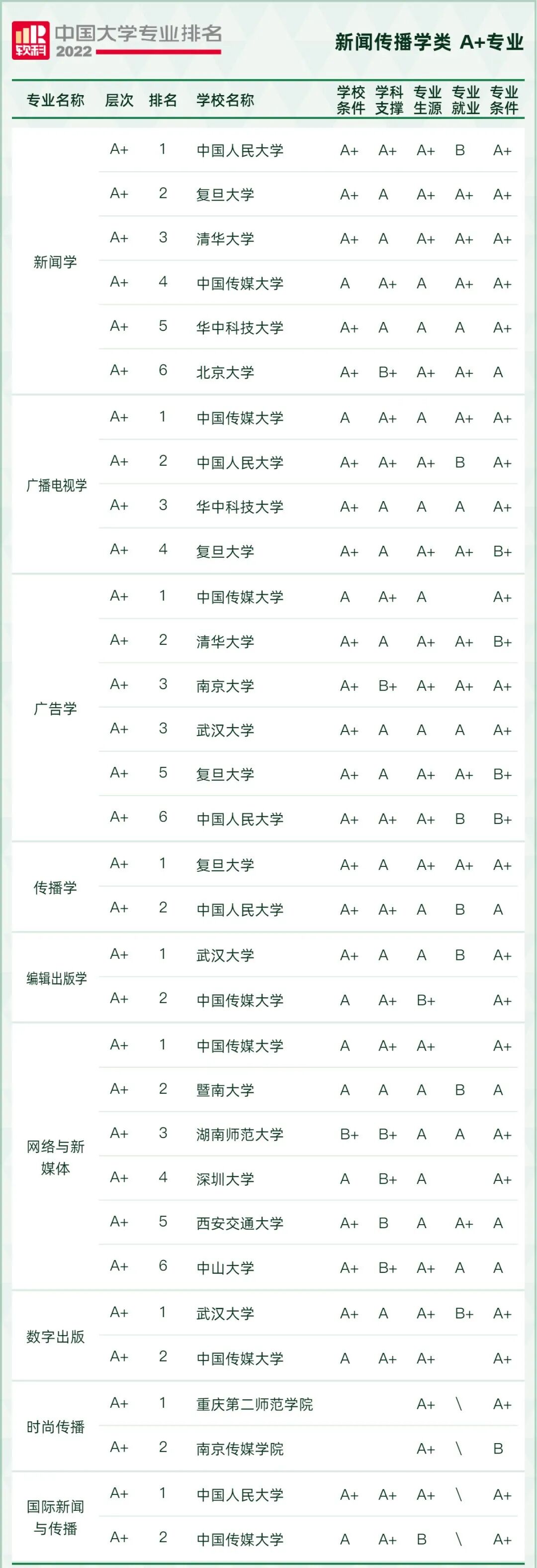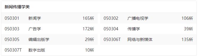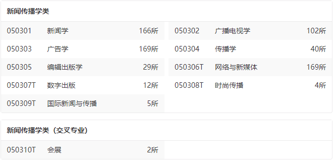 相比起去年的排名,2022年的排名新增了时尚传播、国际新闻与传播、会展三个专业。