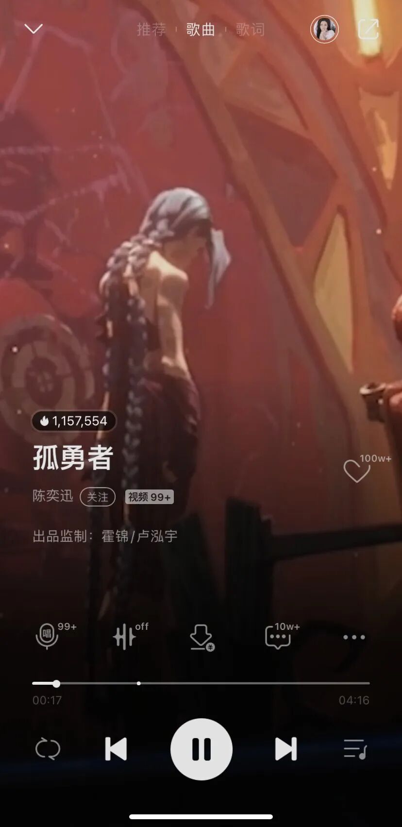 同时,《孤勇者》上线的时间正是游戏话题热度极高的英雄联盟S赛期间,获得了大量网友的关注。歌曲本身旋律上口,副歌好听容易传唱,歌词内容贴近人们心声,能抓住听众情绪。而众多正能量二创剪辑的出现也为歌曲传播锦上添花。
