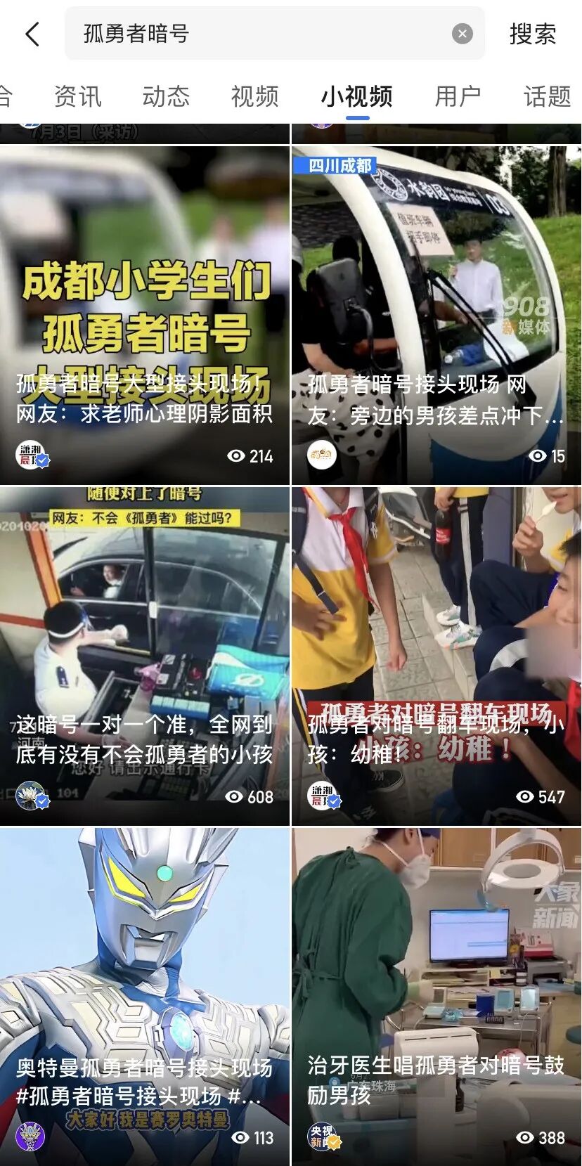 以成年人视角前往街头“对暗号”则是最近围绕《孤勇者》与小学生之间进行的热门互动形式。有些视频创作者选择在街头寻找机会,看到年纪较小的孩子便走过去抛出一句“爱你孤身走暗巷”,期待他们回唱一句“爱你不跪的模样”。