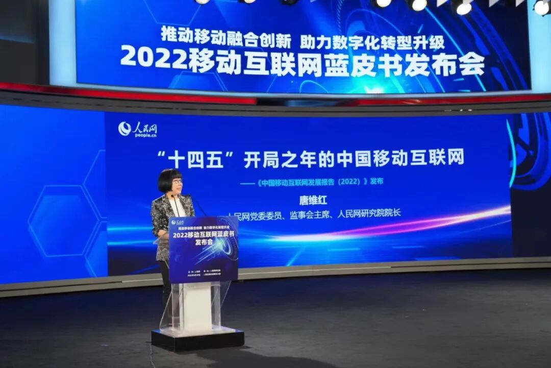 人民网党委委员、监事会主席、人民网研究院院长唐维红发布《中国移动互联网发展报告(2022)》主要内容。张若涵摄建成全球最大5G网络,终端用户占全球80%以上。截至2022年4月,我国已建成5G基站161.5万个,成为全球首个基于独立组网模式规模建设5G网络的国家。5G网络向各行业定制的网络演进,已建成超2300个5G行业虚拟专网,逐渐形成适应行业需求的5G网络体系。5G终端用户超过5亿户,占全球80%以上。移动电话用户和蜂窝物联网用户规模持续扩大。截至2021年底,我国移动电话用户总数16.43亿户,全年净增4875万户,5G移动电话用户达到3.55亿户。三家基础电信企业发展蜂窝物联网用户13.99亿户,全年净增2.64亿户。IPv6步入“流量提升”时代,活跃用户数持续增长。截至2021年12月,我国IPv6地址数量为63052块/32,IPv6活跃用户数达6.08亿。移动互联网用户增速放缓。截止2021年12月底,中国手机网民规模达10.29亿人,全年增加了4373万人,同比增速放缓。移动互联网流量快速增长。2021年,移动互联网接入流量达2216亿GB,比上年增长33.9%。全年移动互联网月户均流量(DOU)达13.36GB/户·月,同比增长29.2%。移动智能终端全面增长。2021年全年,国内智能手机出货量3.43亿部,同比增长15.9%;可穿戴设备出货量近1.4亿台,同比增长25.4%;蓝牙耳机市场出货量约为1.2亿台,同比增长21.1%。5G手机出货量占比近八成。2021年5G手机出货量2.66亿部,同比增长63.5%,占同期手机出货量的75.9%。新型移动终端发展潜力巨大。截至2021年底,全国无人机实名登记系统注册无人机数量共计83万架,较2020年增加44.9%;我国工业机器人出货量达25.6万台,同比增长49.5%;VR头显出货量达365万台,同比增长13.5%。移动应用程序(APP)总量下降。截至2021年12月,国内市场上监测到的APP数量252万款,较2020年12月减少93万款。游戏应用程序以70.9万款的数量位列第一。游戏、日常工具、音乐视频应用下载量居前三。截至2021年底,我国第三方应用商店在架应用分发总量达到21072亿次,同比增长31%。游戏类移动应用的下载量居首位,达3314亿次;其次为日常工具类、音乐视频类、社交通讯类。5G行业应用进一步拓展。截至2021年11月,5G行业应用创新案例超10000个,覆盖工业、医疗、车联网、教育等20多个国民经济行业,近五成的5G应用实现了商业落地。互联网企业市值下降但收入利润增长。截至2021年底,我国上市互联网企业总市值达12.4万亿元,同比下降30.3%。2021年我国规模以上互联网和相关服务企业完成业务收入15500亿元,同比增长21.2%,共实现营业利润1320亿元,同比增长13.3%。互联网投融资规模大幅增长。2021年我国互联网投融资金额513.5亿美元,同比增长42.36%;发生投融资事件2427笔,同比增长41.19%。行业投融资热点领域集中于企业服务、互联网金融、电子商务与医疗健康等。5G投资带动经济总产出增长。2021年我国无线经济规模约为 4.4 万亿元。5G投资1849亿元,占电信固定资产投资比例达45.6%。据测算,2021年5G直接带动经济总产出1.3万亿元,相比2020年增长33%。“5G+工业互联网”呈蓬勃发展态势。2021年,工业互联网政策引领作用持续增强,行业发展呈现“全国一盘棋”态势。工业互联网网络、平台、安全三大体系持续完善。截至2021年底,我国“5G+工业互联网”在建项目超过1800个,应用于工业互联网的5G基站超过3.2万个,具有一定区域和行业影响力的工业互联网平台超过150家,接入设备总量超过7600万台套,服务企业超160万家。“国家—省—企业”三级协同联动的工业互联网安全态势感知体系初步构建。工业互联网投融资规模大幅攀升, 2021年完成非上市投融资事件346起,同比增长11.6%,披露总金额突破680亿元,同比增长85.9%。人工智能技术应用不断加快。2021年,“十四五”规划明确行业发展路线图。各地积极推动智能计算中心建设,截至2021年底,我国在用数据中心标准机架总规模超过400万架,总算力约90EFLOPS,已基本满足各地区、各行业数据资源存储和算力需求;我国人工智能开源开放平台超40个,语音、视觉、自然语言处理等人工智能开放服务能力进一步提升;人工智能与移动互联网相结合的应用开始广泛覆盖智慧城市、智慧交通等日常生活。区块链应用进一步拓展。2021年,区块链产业发展迈入新阶段。中央及各大部委陆续出台推动区块链应用落地政策。住建部上线基于区块链的全国住房公积金小程序,江苏昆山完成全国首笔基于区块链技术的闲置住宅使用权流转交易,浙江上线全国首个知识产权区块链公共存证平台,中国—东盟区块链公共服务平台“桂链”上线,进一步推动面向东盟区域的数字经济合作。物联网进入场景落地阶段。目前,物联网已广泛应用赋能装备控制、工程机械、航天制造等传统行业,通过传感器、嵌入芯片的布设实现工业生产的智能感知和决策。搭载了物联网传感器的可穿戴设备、智能家居、智慧医疗、车联网、灾害预警系统等应用开始进入大众日常生活。网络零售打造消费新格局。2021年,全国网上零售额达13.1万亿元,比上年增长14.1%,占社会消费品零售总额的24.5%。特别是以95后、00后为代表的“Z世代”以及“银发一族”网民的增长,带来了新的消费场景与模式。社交电商、直播电商等新业态新模式持续发展,成为驱动经济增长的新引擎。在线文旅、手机外卖引领新型消费。2021年,各地及平台等通过VR等技术打造新型文旅融合产品,推动“