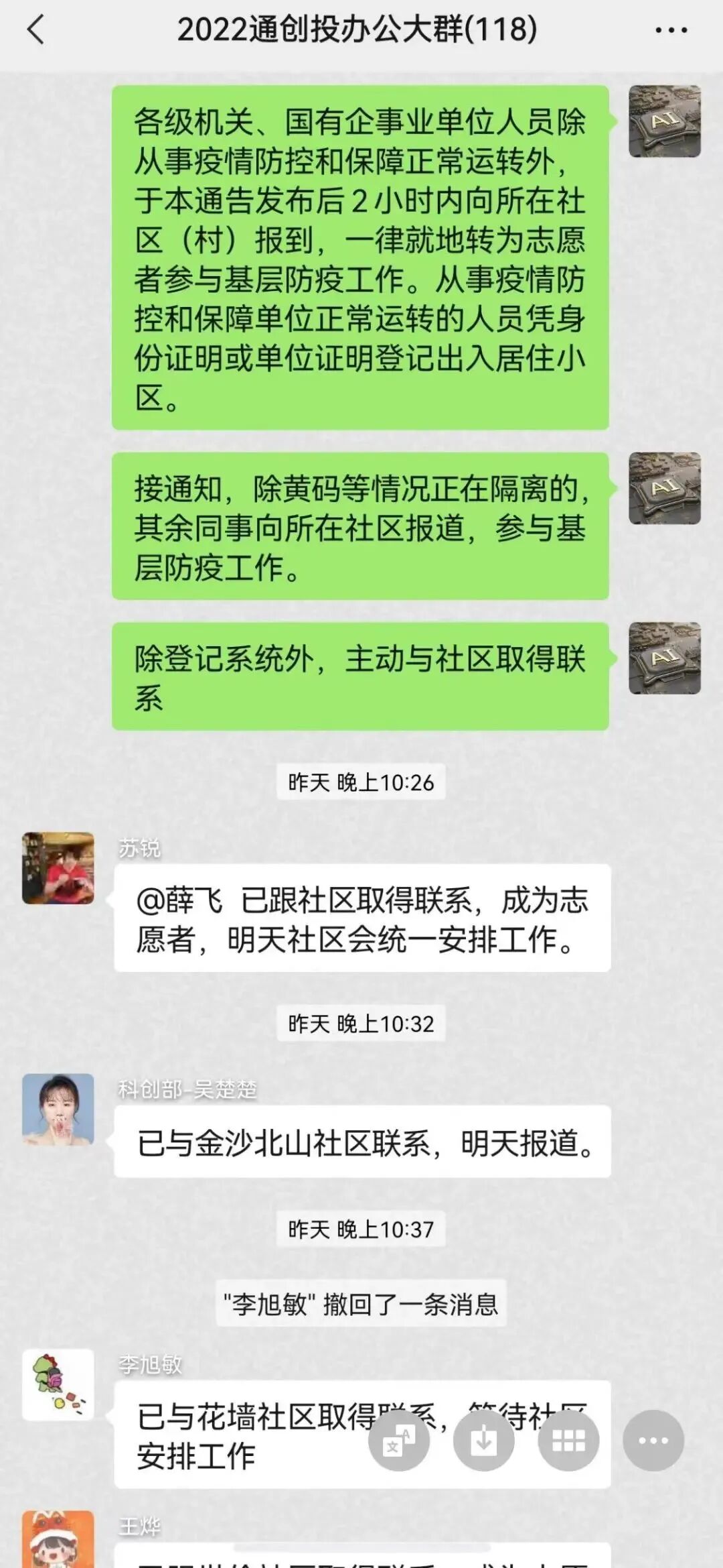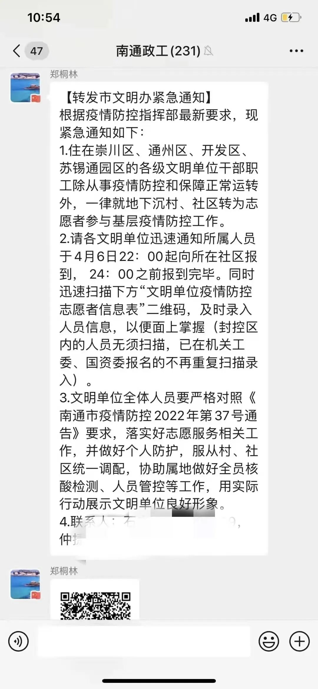 图:4月6日晚,南通联通积极响应市委号召,连夜组织志愿者报名,对接社区,参与防疫。从昨天晚上开始,南通联通志愿者已经开始协助社区开展人员排查、场所管控、信息登记、测温扫码、秩序维护、物资配送等基层防控工作。