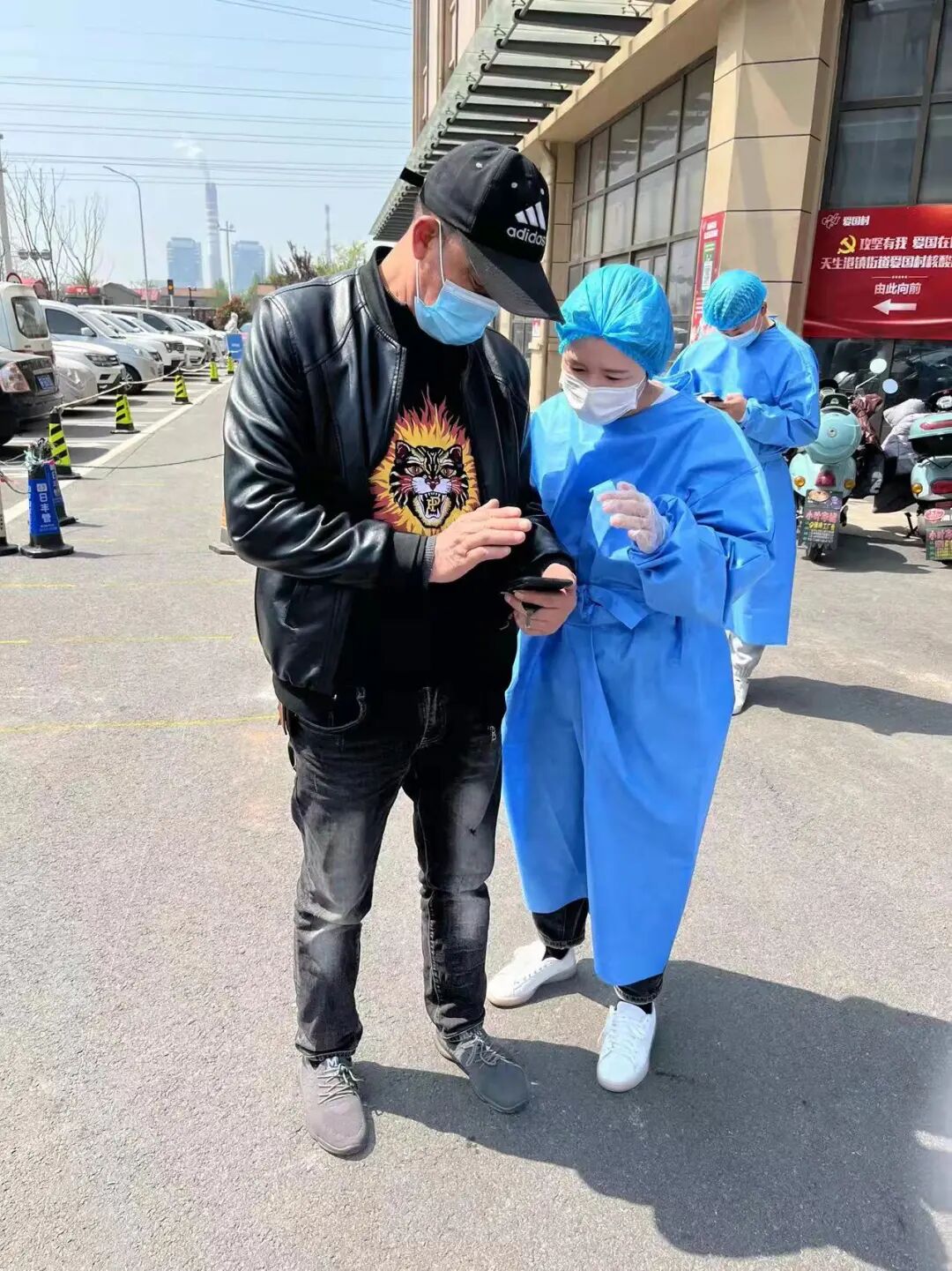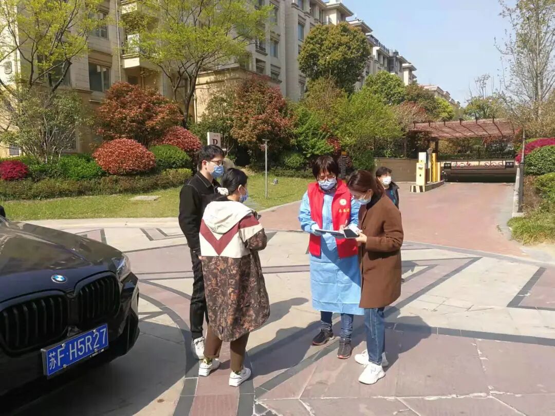 图:南通交投集团总工程师刘疆宁同志于4月7日早上6点接到通知,便到望江社区军山花园进行政策解说,协助社区开展疫情防控工作。