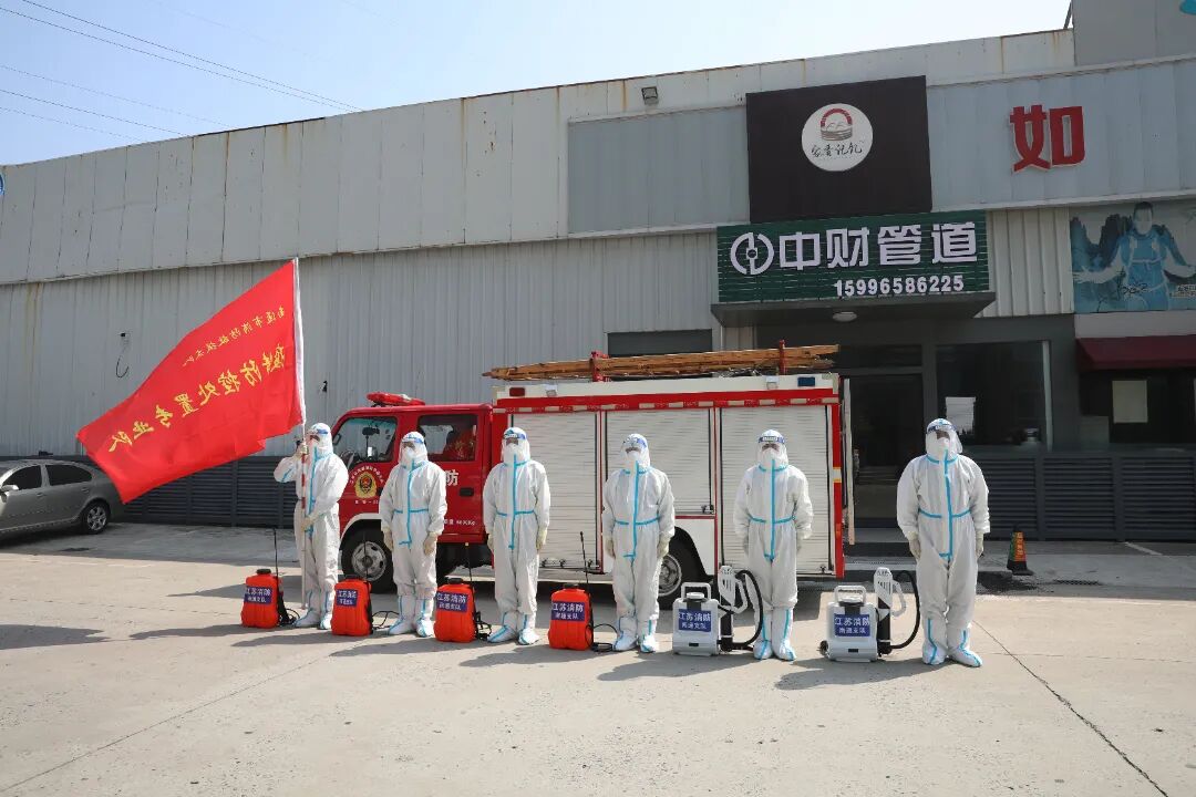 图:南通消防救援支队疫情防控处置队12名队员配合疾控中心对先锋街道、十总镇相关封控区进行消杀作业。消杀面积10030㎡,消杀空间8000m³。