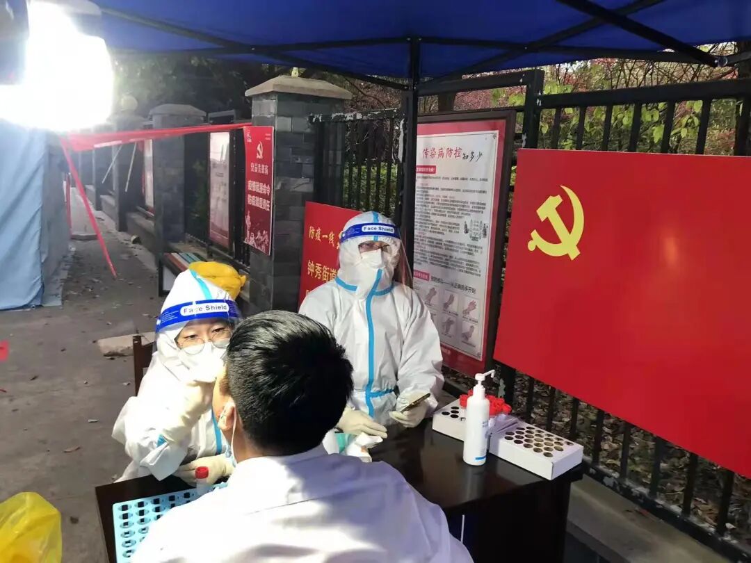 图:上海银行南通分行协助五一社区夜间核酸检测工作