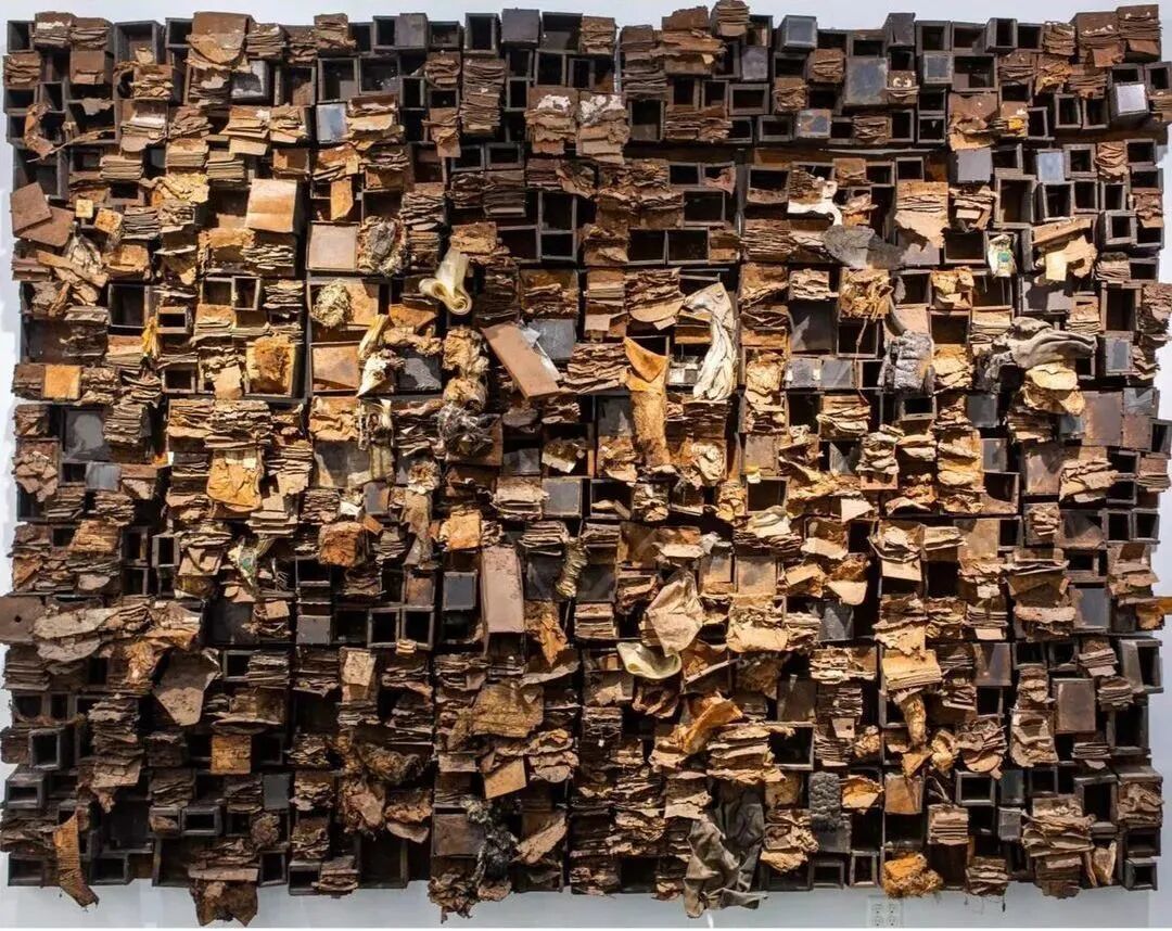 > 《数字55(Number 55)》,1996年,铁锈、织物、玻璃、塑料、金属、木材,269.2 × 365.8 cm,于今年被纽约现代艺术博物馆(MoMA)永久收藏