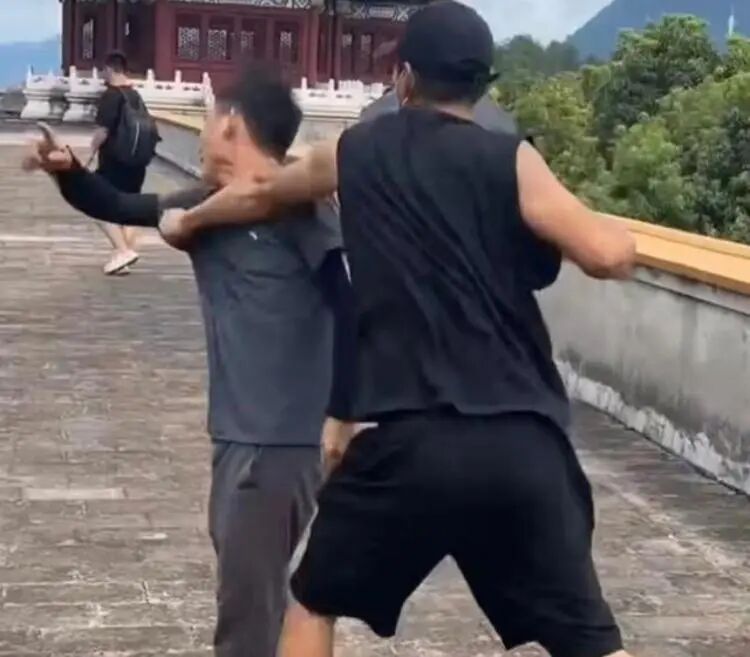 视频中,一名戴棒球帽穿黑衣的男子揪着一名比他矮小一点的男子,态度凶狠。戴棒球帽的男子边打边骂,数次打到对方的脑袋,矮小男子的鼻子部位有血迹出现。