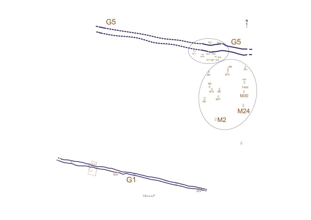 墓葬区还发现了两道平行的壕沟,进出墓葬区的通道为夯土建筑,体现了墓葬区的规划、设计、组织与管理等特征,其很可能具备了商代最早“兆域”结构雏形,目前仍在进一步的发掘与研究中。