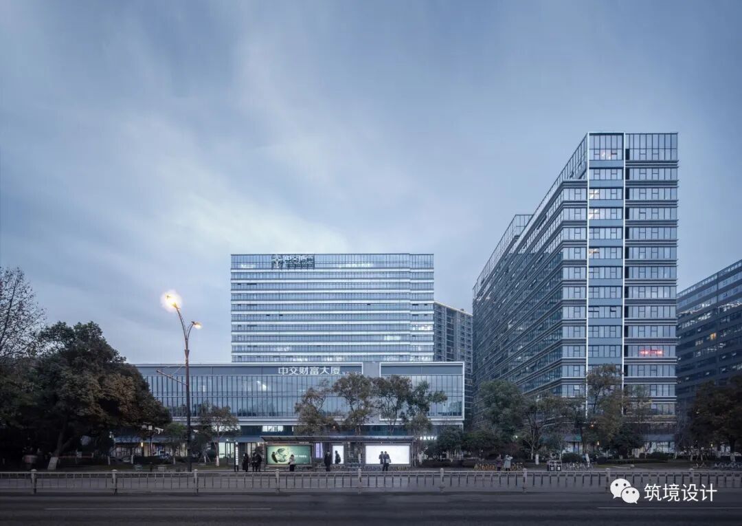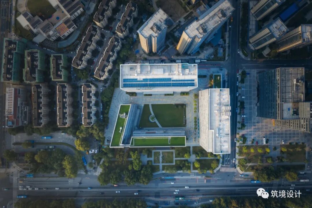 历史上的杭州是南宋的都城,南宋时期的办公机构往往呈现出院落式布局,满足功能的同时无不透露出一种山水共栖的情怀。我们以此为启发,提取院落为原型,将四栋楼宇围合布局,构成都市中自成天地的山水院落。整个组合高低错落,围而不堵,创造了独特城市肌理的同时也极大地丰富了城市的天际线。