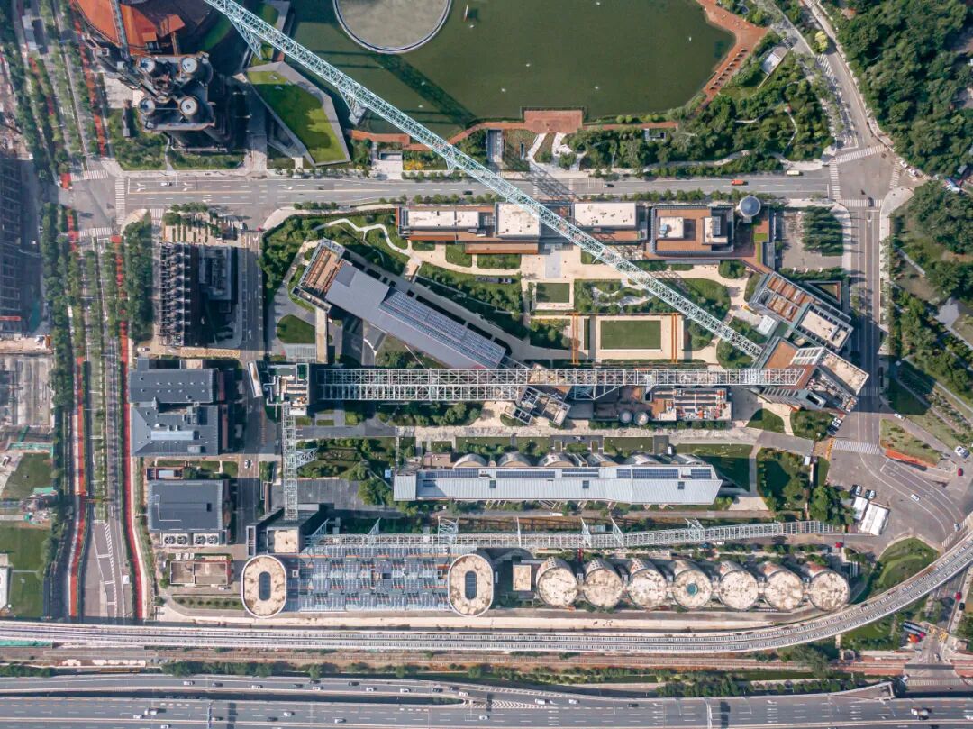 项目总建筑规模约为86500平方米,主要功能为办公、会议、展示及其配套服务设施;项目共计十个建筑单体子项:N3-3转运站、N3-2转运站(含会议中心)、N1-2转运站、员工餐厅、主控室、联合泵站(含展示中心)、北七筒仓、干法除尘、停车楼;其中停车楼为新建,其他子项均为既有工业遗存改造或加建。