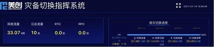 至此整个演练过程顺利完成,数据零丢失,用户侧对系统切换几乎无感知。而且切换过程还可见,各种关键环节,关键指标实施展现,切换过程一目了然。