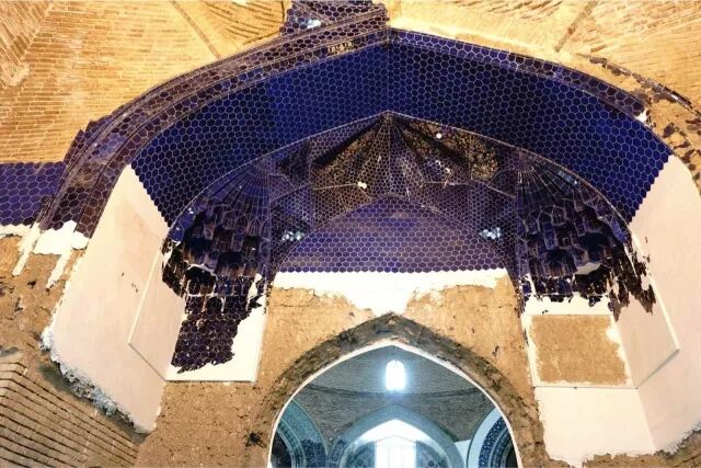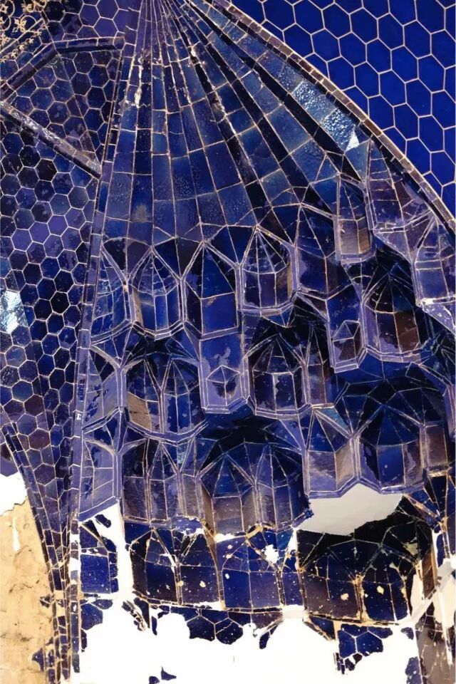 如今上面的砖结构已经完成,但除后面主要的入口(在1773年的地震中幸存下来)之外,原来的蓝色外立面已经荡然无存。内部也是蓝色的,人们在下部仅存的瓷砖周围努力地补上了缺失的图案,就建筑本身而言不可与伊斯坦布尔的类似殿堂相媲美,但其颓残中保持着的秀美,让人心生沉甸甸的感动,历史的真实正如贫穷山村里的纯真女孩,正如难掩破败的伊斯兰绿松石。