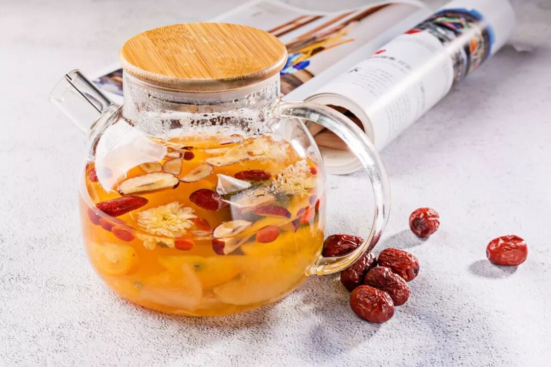 菊花,金银花,茉莉花一起泡着喝,可清热解毒,可防治风热感冒、咽喉肿痛、痈疮等,常喝更可降火,有宁神静思的效用。平常泡一杯菊花茶来喝,能使眼睛疲劳的症状消退,如果每天喝三到四杯的菊花茶,对缓解视力也有帮助,经常玩微信的朋友一定试试。日常生活中多喝菊花茶有助于防止辐射,经常对着电脑的上班族,应该多喝菊花茶,这样能够抵触电脑的辐射。苦瓜可以有效降低血液中脂肪和血糖的含量,使血液中胆固醇的含量降低,促进血液流通顺畅。苦瓜性寒味苦,对心、肺、胃具有清凉解渴,促进新陈代谢的作用。金银花对多种致病菌如金黄色葡萄球菌、溶血性链球菌、大肠杆菌等均有一定抑制作用,治拉肚子。喝金银花可以消除皮肤瘙痒。对于身上有皮炎湿疹癣的朋友,平时多喝金银花,少吃辛辣,海鲜,恢复会更快。对外感风热或温病初起,身热头痛、心烦少寐、神昏舌绛、咽干口燥等有一定作用。柠檬水能缓解钙离子促使血液凝固的作用,可预防和辅助治疗高血压和心肌梗死。更鲜为人知的是,柠檬也能祛痰,且祛痰功效比橙和柑橘还要强。痰多的朋友多泡点喝吧。柠檬水中含有大量柠檬酸盐,能够抑制钙盐结晶,从而阻止肾结石形成,甚至可以使部分慢性肾结石患者的结石减少。枸杞中的多糖对肝脏有着很好的保护作用,可以降低血清谷丙转氨酶,促进肝损伤的修复,使肝功能正常运行。枸杞有很好的抗衰老功效,泡水喝可以延缓面部衰老,改善皱纹。枸杞所含的丰富多糖、维生素E、硒及黄酮类对皮肤抗氧化也有很好帮助。枸杞能够降低血液中的胆固醇、甘油三酯水平,对糖尿病患者具有一定的疗效。 山楂片营养丰富,含有丰富的糖类、蛋白质、脂肪、钙、磷铁和维生素C等营养成分,食后有生津开胃、助消化的功效。山楂具有不错的降血脂的功效。高血脂的人可以适当泡山楂水喝,会有很大帮助。山楂片泡水还有利尿通便的功效,所以出现便秘的人可以适当多喝一点。但是如果本身有胃溃疡之类的胃病,则最好少喝。薄荷叶,有健胃助消化、促进新陈代谢、增强体力、抗衰延寿、清热解乏等功效,还可以预防口臭。薄荷特有的多种茶萘酚酸,可以改善面部痘痘。如果想尽快去除脸上的痘痘和痘印,平时经常喝点薄荷对恢复会有更好的帮助。薄荷水尤其适合运动后饮用,小小一杯就可以快速解渴,而且能够帮助排除体内的废物毒素。咽喉炎和气管炎者都可以用罗汉果花泡茶,来缓解病情。常喝罗汉果改善口腔和食道环境,去除口臭,口腔异味。玫瑰花茶不愧为花茶中的极品,长期喝玫瑰花,可以解油腻,减少体脂肪的累积,同时还能补充植物纤维,让身体渐渐纤瘦起来。蜂蜜中含有大脑神经元所需的能量。蜂蜜中的果糖、葡萄糖可以很快被身体吸收利用,改善血液的营养状况。对经常熬夜的朋友是很有帮助的。蜂蜜中含有一定的花粉粒,经常喝的人就会对过敏恢复有不错帮助。还可以提高皮肤免疫力,防止过敏的再次发生。蜂蜜有消炎、祛痰、润肺、止咳的功效,枇杷蜜的止咳作用最好。用法:雪梨一个,切薄片拌蜂蜜吃,每日数次。决明子中富含的元素,具有明显的清肝明目的作用。可治疗青盲、目涩、白膜、眼赤痛等各种眼疾。决明子中的大黄素具有清热润肠的作用,可治内热肠燥,大便秘结,对痔疮也有不错的效果,有痔疮的朋友可以去试试。很多茶品都具有降血压的作用,决明子茶也不例外,将决明子泡茶喝可防治高血压。