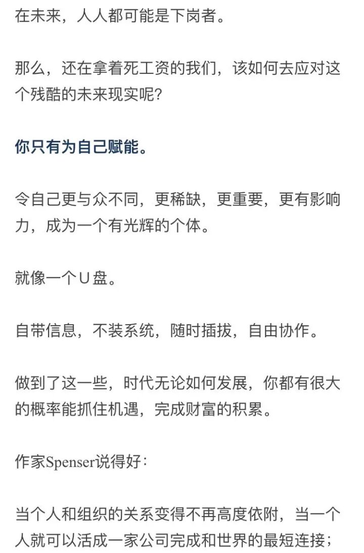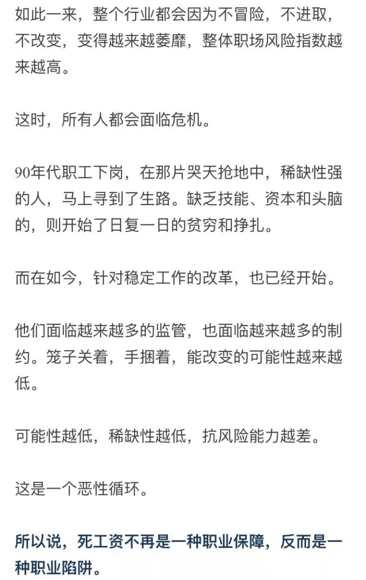 你很可能到了退休时,年薪还是十几万,甚至都跑不赢通货膨胀。在互联网经济的浪潮中,每月几千块的死工资,变得越来越鸡肋。食之,无味。弃之,可惜。