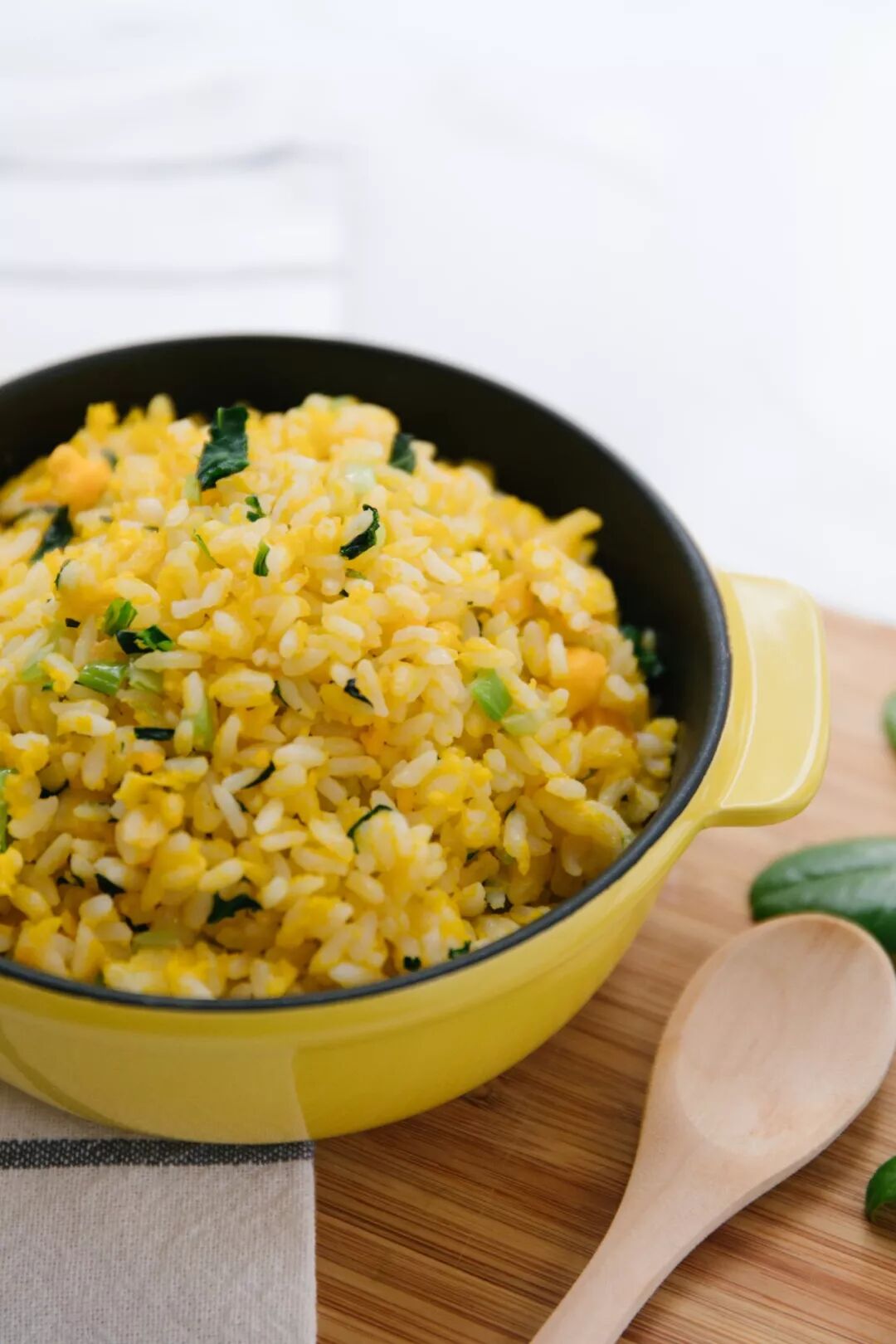 这耀眼的金黄色有没有诱惑到你呢?不论是一个人在家独享,还是在亲朋好友前露一手,这道赛螃蟹炒饭都不会让你失望!