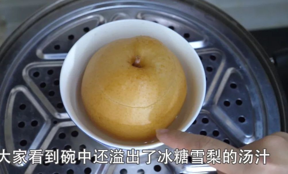 大家看到碗中还溢出了冰糖雪梨的汤汁,这个是也是可以喝的,千万不要倒掉
