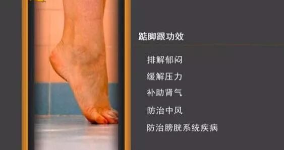 从这个道理上讲,踮脚跟可以潜阳,引火下行,大凡阳气上浮、虚火上炎的疾病都能应用,如高血压、头晕、三叉神经痛等。