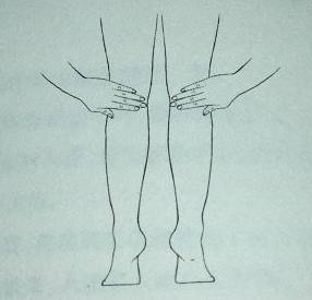 直立,用双手轻轻拍打两腹股沟,逐渐加力,直至两髀微微发热为止。每天拍打两到三次,每次3~5分钟。