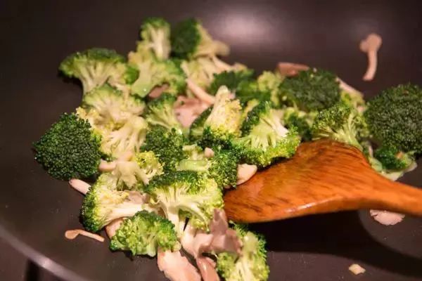 3、加入西兰花继续煸炒