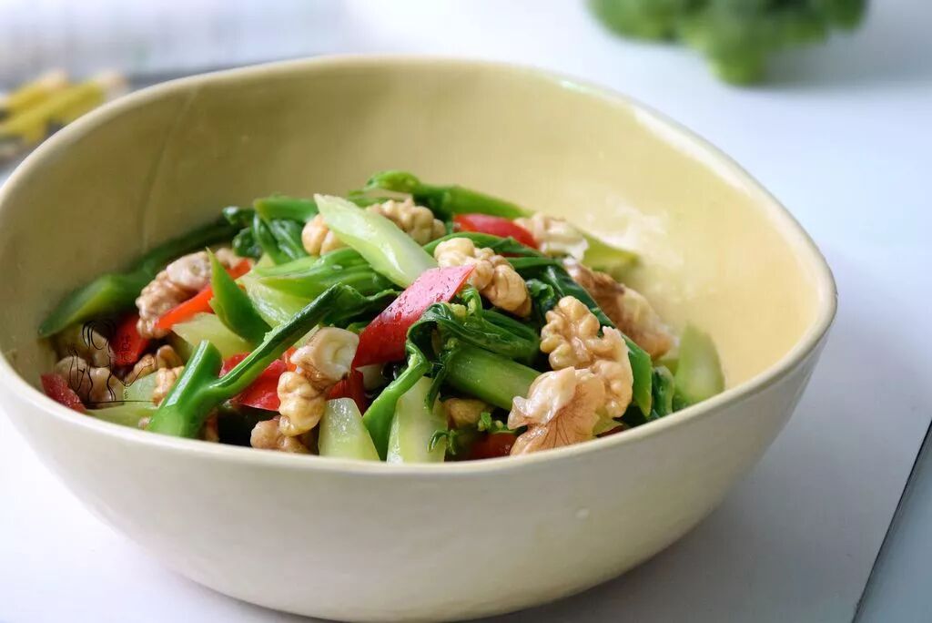 芥兰 200克、核桃 50克