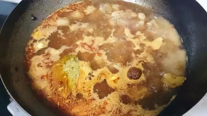 8.加入炖好的牛肉和汤。