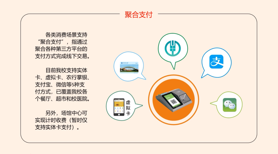 从原来单一的消费到现在校内餐厅、超市、校医院、宿舍门禁……更多第三方消费和应用场景,虚拟卡不但能消费,还支持身份识别(宿舍门禁,早操打卡。暂不支持学校和图书馆门禁)!