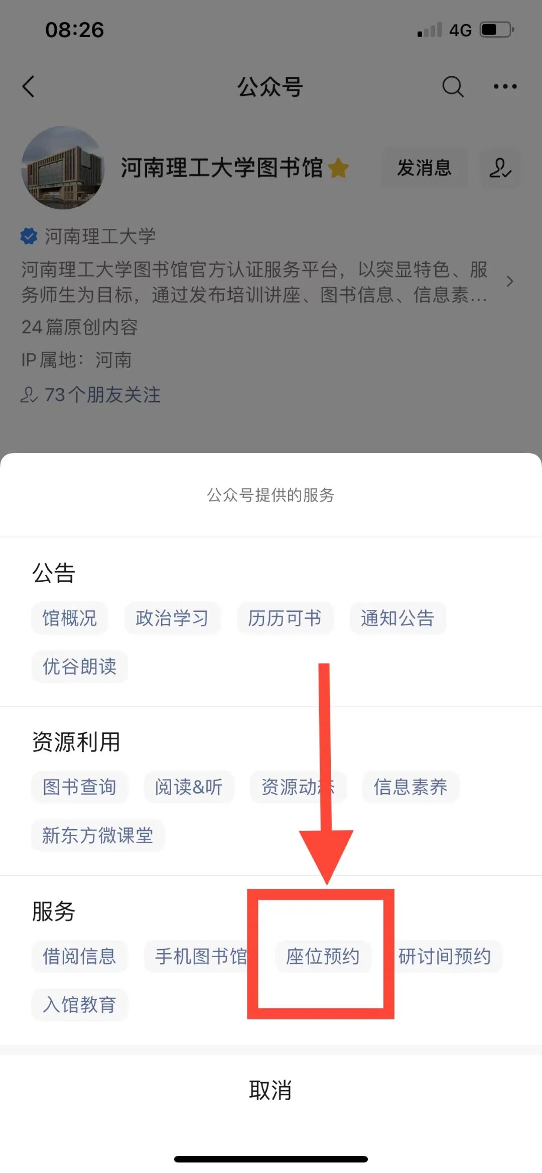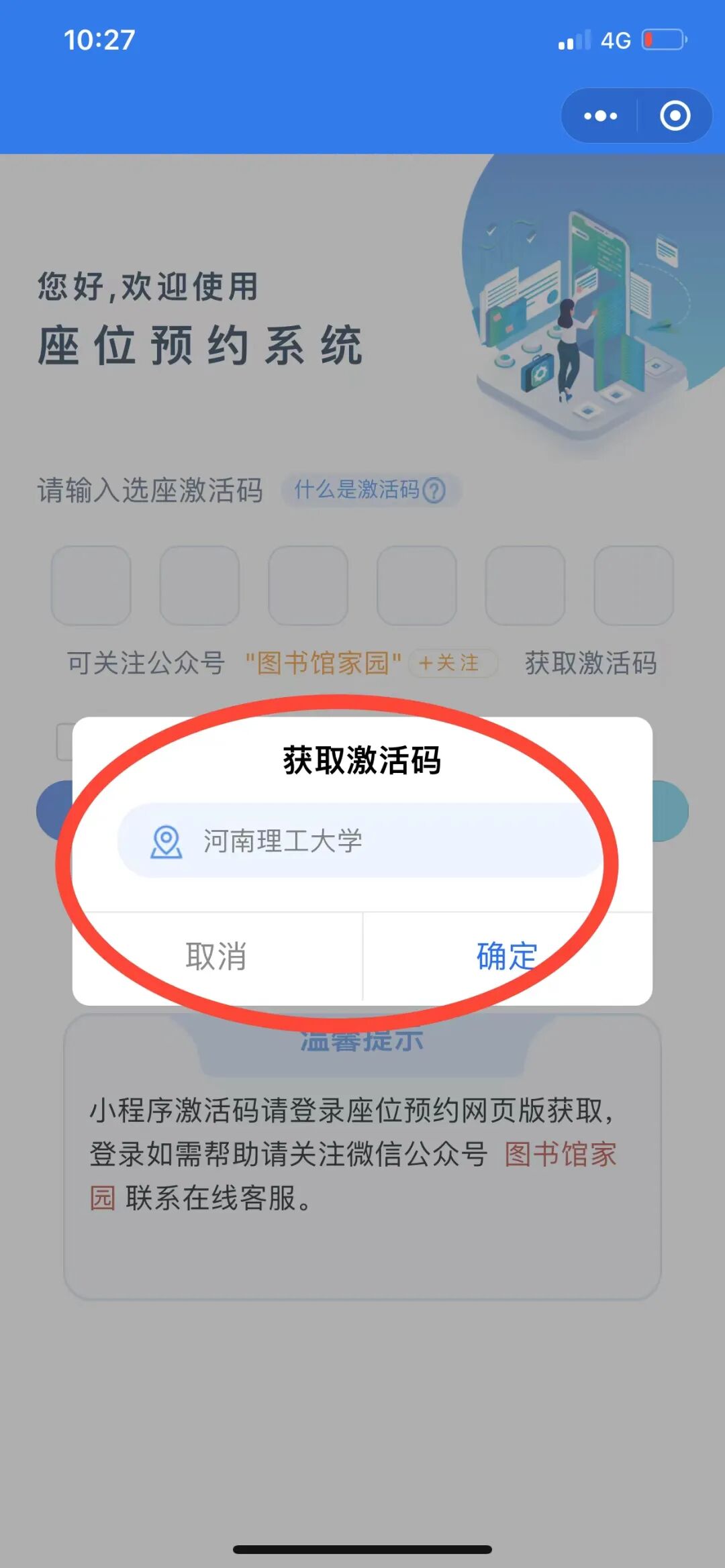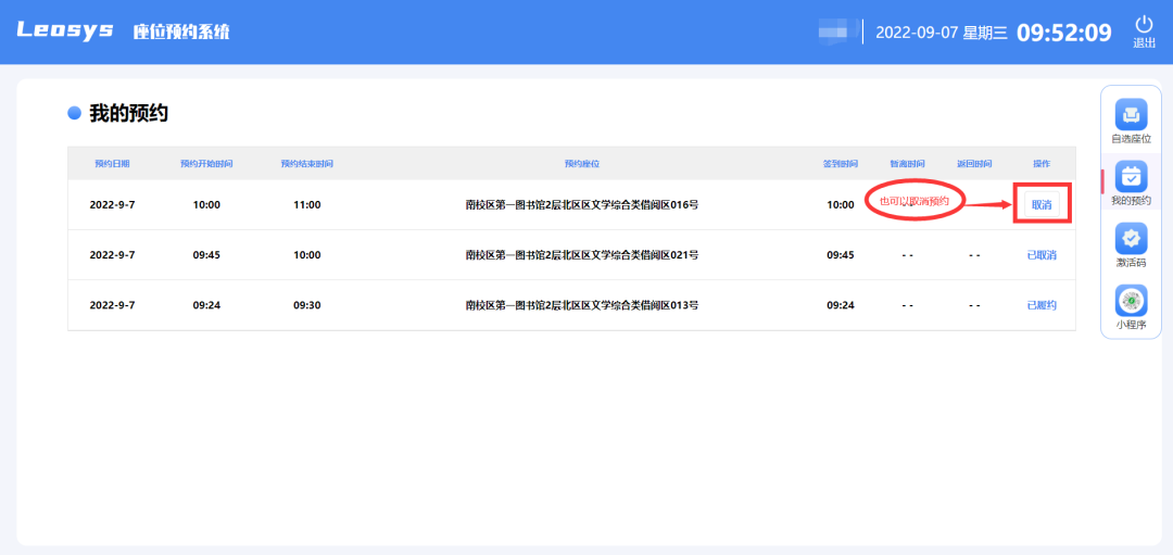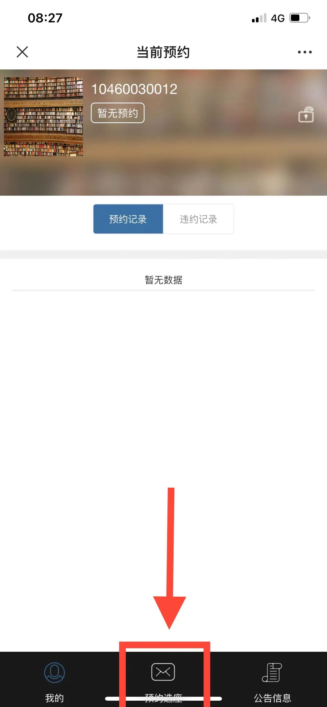 绑定后进行小程序,即可进行预约座位、签到、暂离等操作。